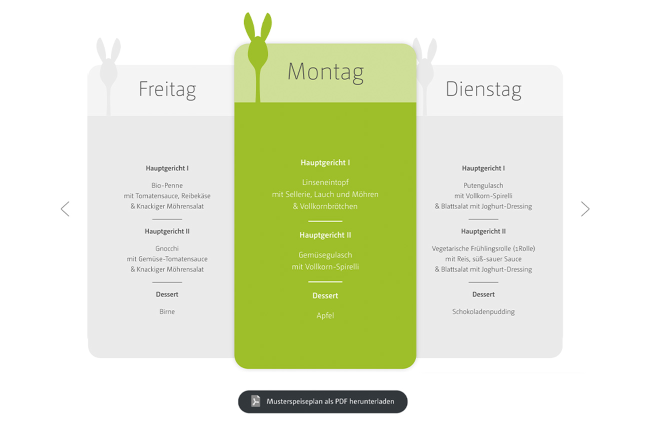 Gesunde und nachhaltige Gerichte, die auch kritische Gaumen überzeugen. Die Pirrung Gruppe ist Experte, wenn es darum geht, frische Zutaten mit viel Geschmack auf die Teller von Groß und Klein zu bringen – und wir haben dafür gesorgt, dass sich das auf der Website widerspiegelt. Mit einem klar strukturierten Menü, ansprechenden Bildern, und Texten, die Appetit auf mehr machen. Abgerundet wird das Ganze mit praktischen Kundenservices wie den downloadbaren Musterspeiseplänen.